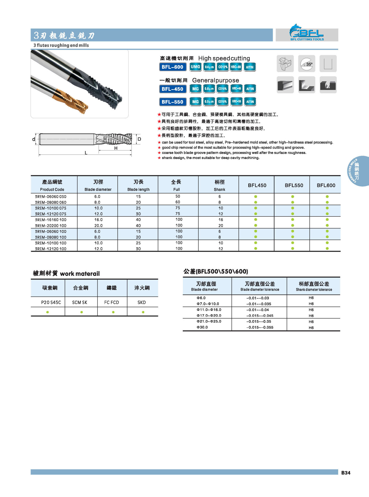 | BFL 3REM Solid Carbide 3 Flutes Roughing End Mill |