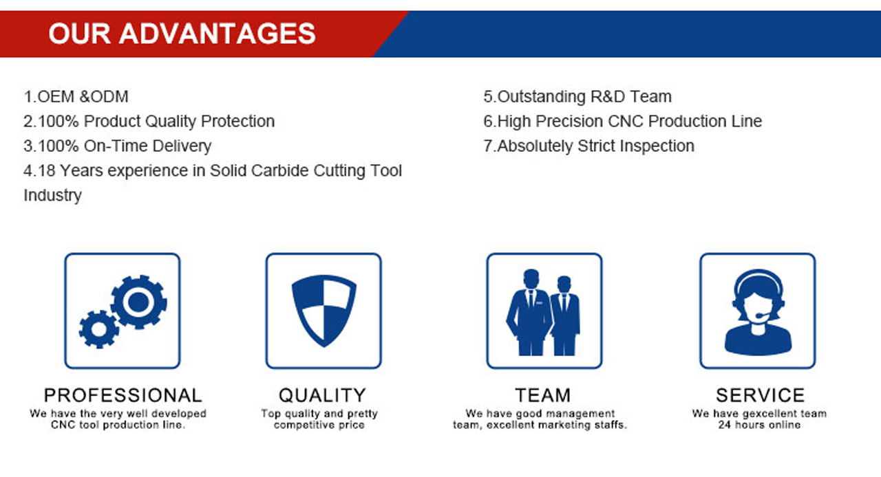 | 1.Can be used for the processing of copper, cast iron, carbon steel, mould steel, stainless steel, taitanium alloy, tool steel, and heat-treated steel 2.Bring good surface roughness after processing 3.With highly heat-resistant ALTIN coating, can be used for high-speed processing 4.High toughness, using grain-sized carbon tungsten as the raw material 5.Help to increase the smoothness, reduce the friction coefficient,and improve the lathe efficiency, thus save more production time |