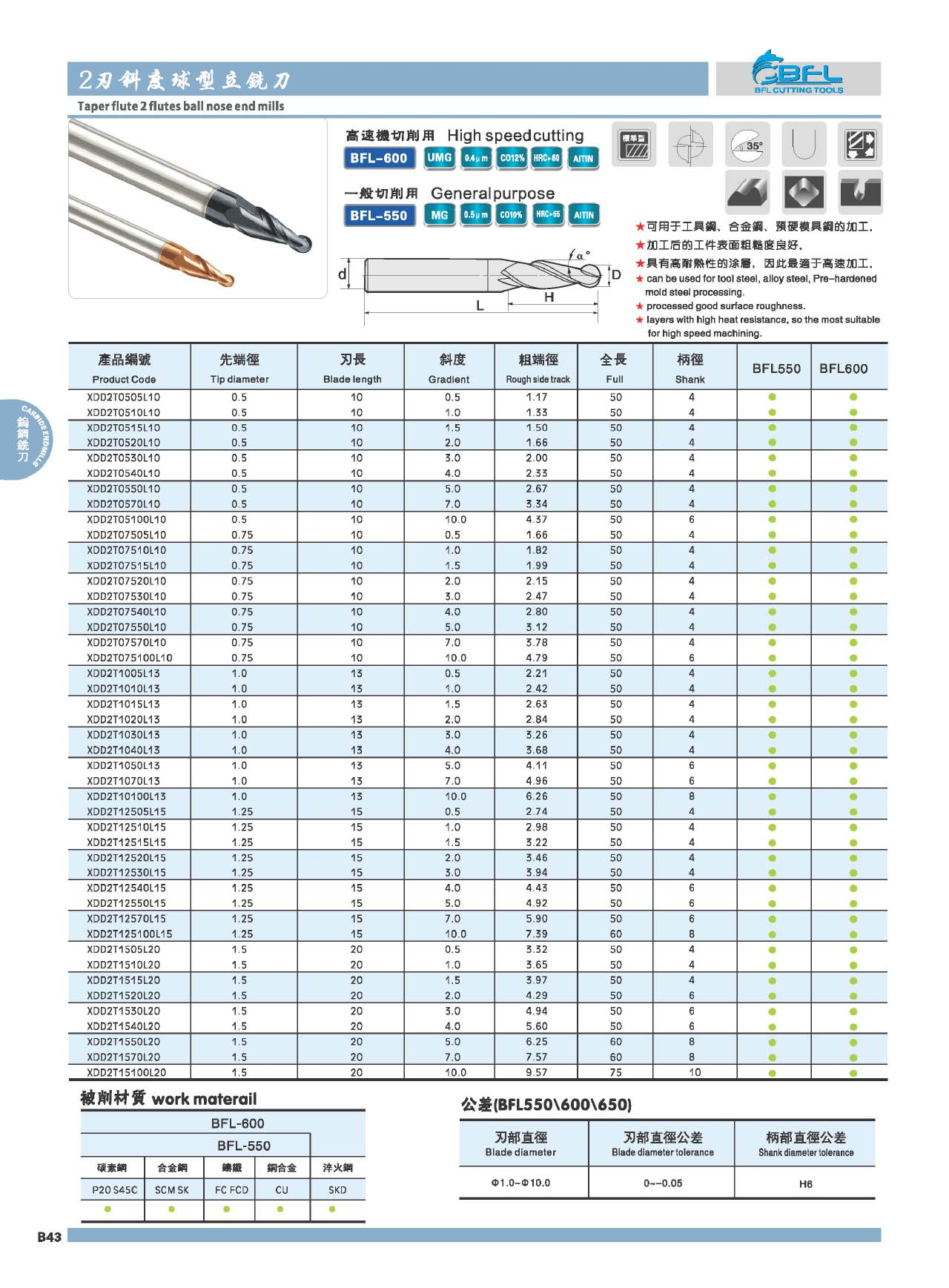 | BFL Tungsten Carbide Tapered Ball Nose End Mill Made In China |
