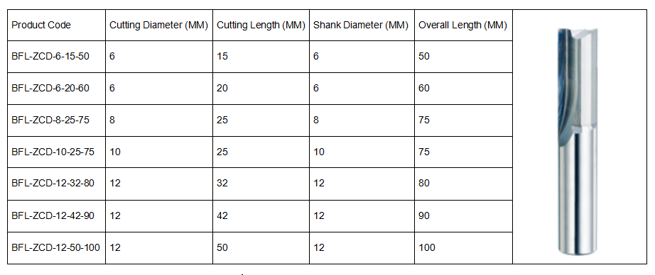 | BFL Solid Carbide 2 Flutes Straight Flute End Mill Bit For Wood | |||||||||
