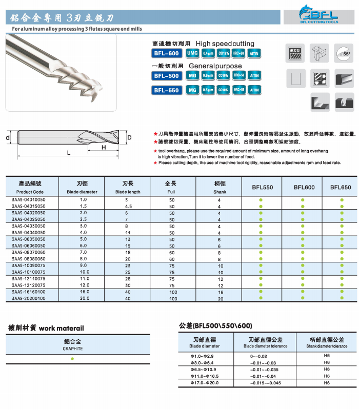 | BFL Tungsten Carbide New Design End Mill For Aluminum | ||||||
