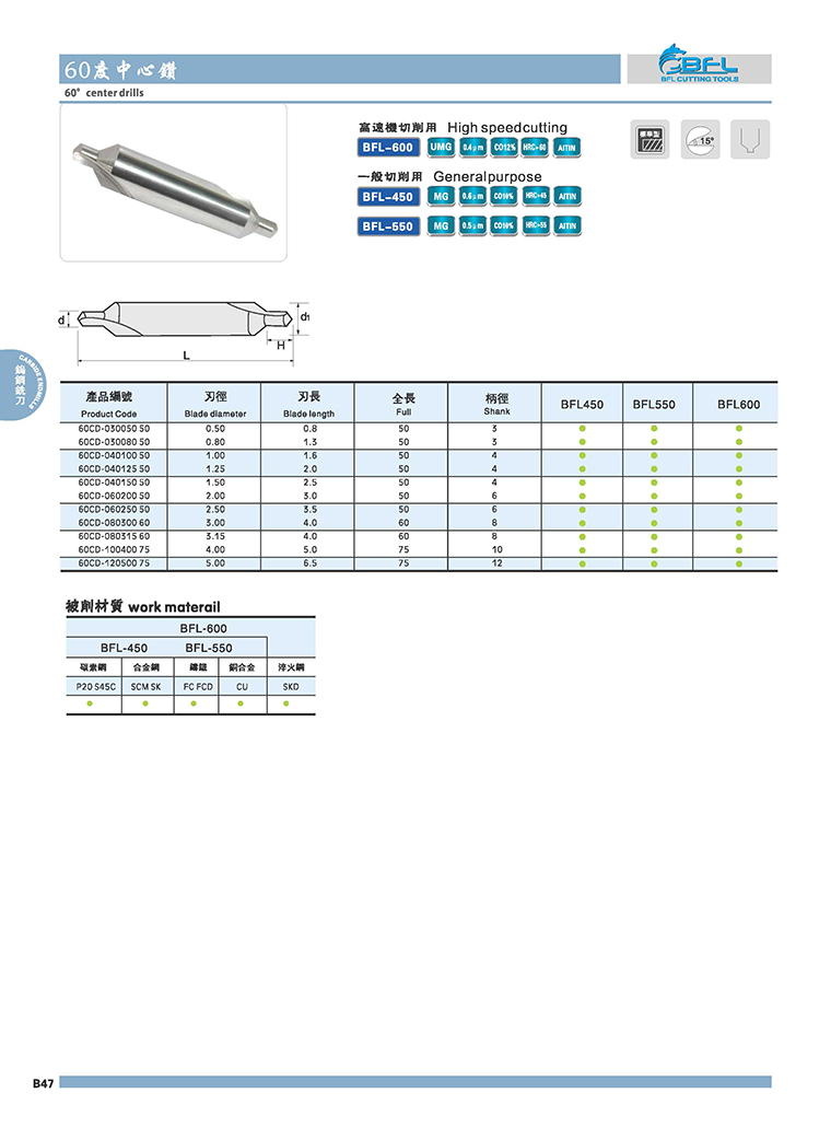 | Carbide center drill | ||||||