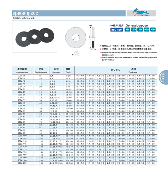 BFL Solid Carbide Saw Blade for tool machine